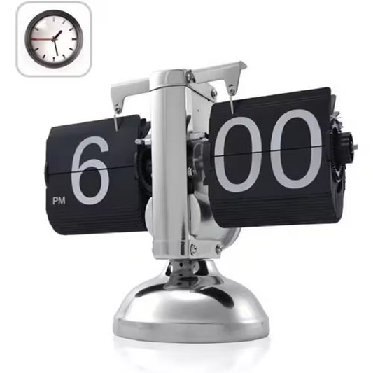 Retro Digital Flip down Clock-Battery Powered Internal Gear Operated Clock for Home and Office Decor, Black